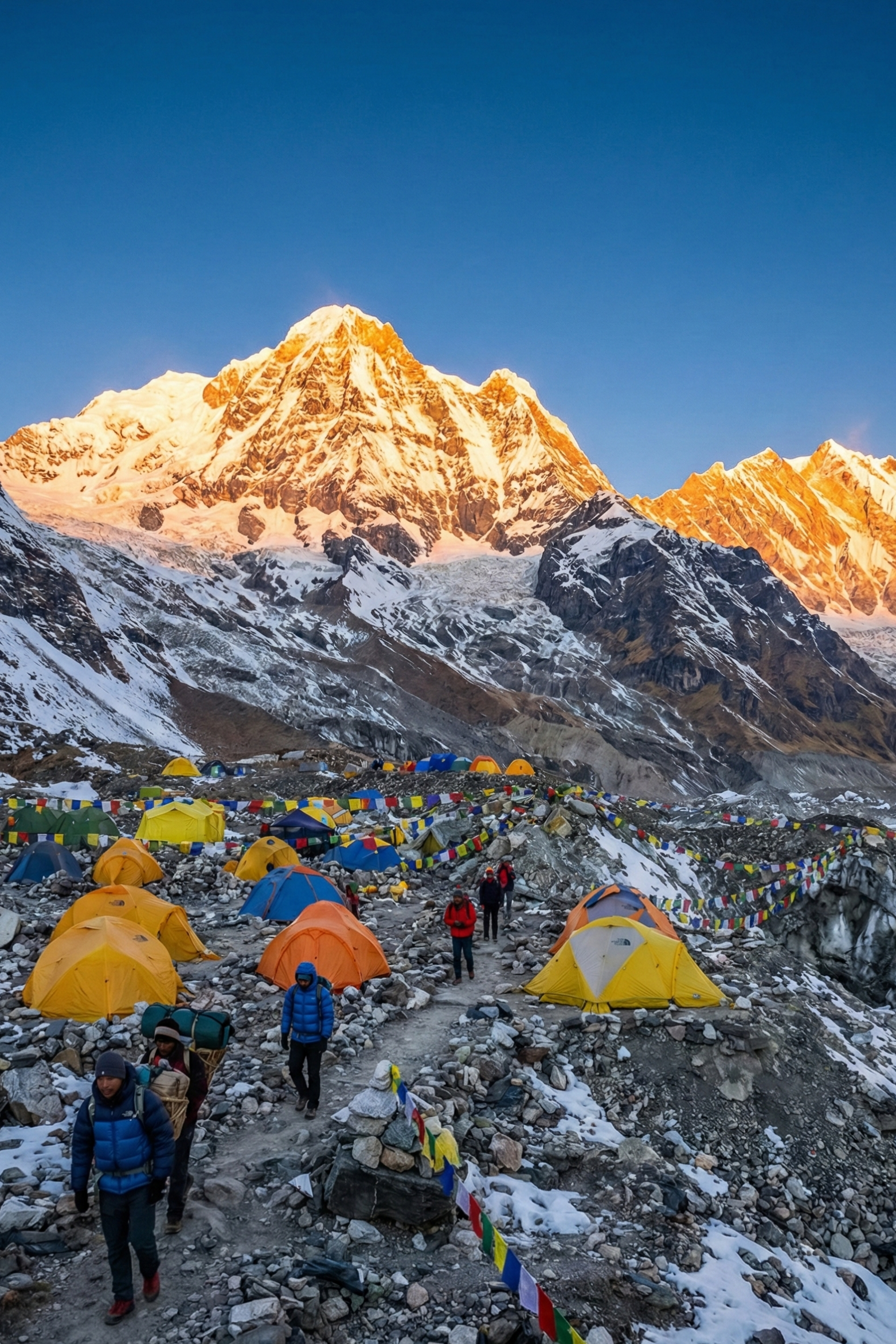 The Annapurna Base Camp trek is a popular Himalayan adventure that takes trekkers through lush forests, terraced villages, and high mountain landscapes to reach the base of Annapurna I (8,091 m). It offers breathtaking views of Annapurna, Machapuchare (Fishtail), and the surrounding peaks.